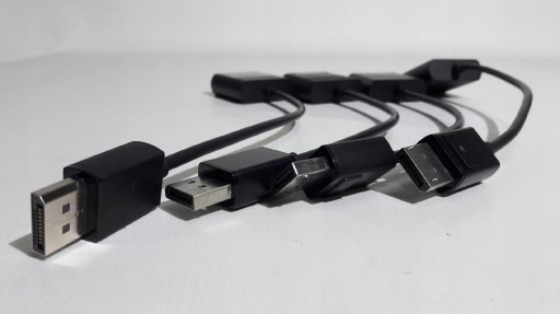 Żeńska końcówka DVI i męska DisplayPort. Sygnał płynie z DisplayPort do DVI