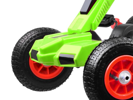 Sportowy Gokart sprosta wymaganiom każdego małego kierowcy. Gokart na pedały przeznaczony jest dla dzieci lubiących aktywnie spędzać swój wolny czas. Wykonany został z lekkiej metalowej konstrukcji z plastikowymi dodatkami. Wyposażony został w pompowane gumowe koła oraz wygodny, wyprofilowany fotel, co zapewni komfort podczas jazdy. Fotel posiada dwustopniową regulację odległości do kierownicy, dzięki czemu łatwo można ją dopasować do wzrostu dziecka. Hamulec ręczny zapewni bezpieczne hamowanie, podczas nieprzewidzianej sytuacji.