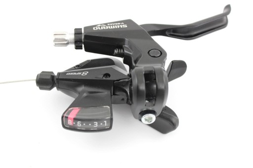 Nowy komplet doskonałych klamko manetek Shimano, przeznaczonych do współpracy z przerzutkami z indexem shimanowskim, do napędu przedniego na trzy zębatki oraz tylnego z ośmioma rzędami zębatek na kasecie.