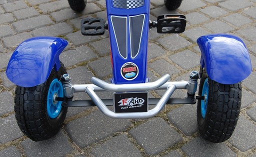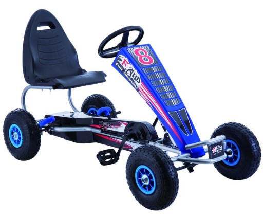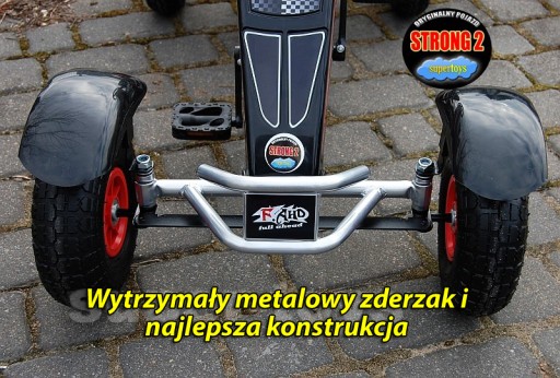 DUŻY SUPER GOKART NA PEDAŁY Z BARDZO SOLIDNĄ KONSTRUKCJĄ, POMPOWANYMI KOŁAMI, HAMULCAMI NA KAŻDE KOŁO ORAZ WYGODNYM I REGULOWANYM SIEDZISKIEM