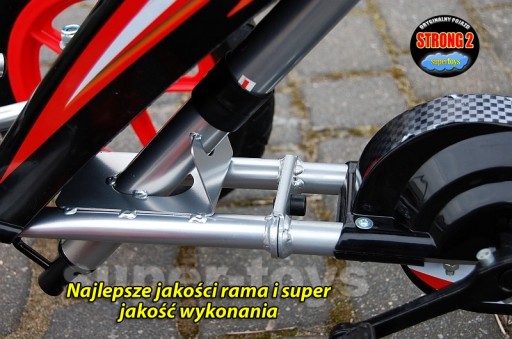 W naszej wersji pojazd posiada duże wygodniejsze pedały lepszy łańcuch oraz łożyska