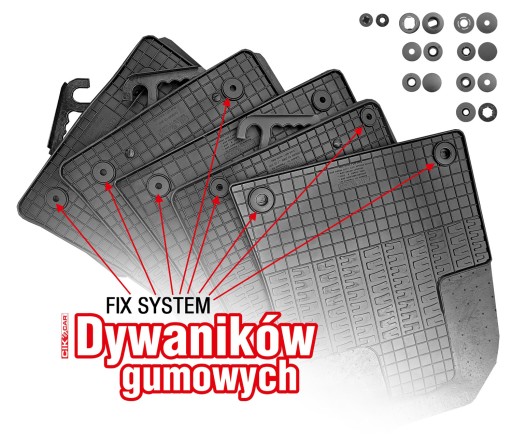 - Dywaniki posiadają wystające bolce, dzięki czemu nie przesuwają się w trakcie jazdy.
