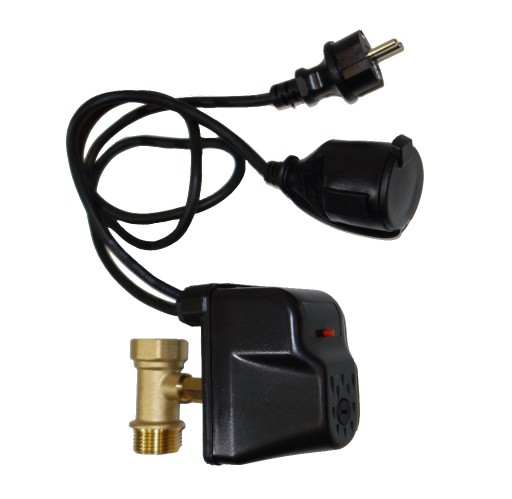 Urządzenia zabezpieczające pompę przed uszkodzeniem wywołanym pracą bez wody. Urządzenie automatycznie przerwie pracę pompy, gdy ciśnienie wody w instalacji spadnie poniżej poziomu wyłączenia - 0,7 bar. Pierwsze uruchomienie pompy nastąpi po naciśnięciu przycisku RESET. Gdy ciśnienie w instalacji przekroczy 1,1 bar urządzenie zacznie działać bezobsługowo. Urządzenie posiada możliwość regulacji zadanego ciśnienia. Możliwość montażu w pionie lub poziomie. Urządzenie wyposażone jest w mosiężny trójnik podłączeniowy 1 calowy, gumowy przewód z wtyczką i gniazdem ułatwiający podłączenie do pompy i do sieci.
