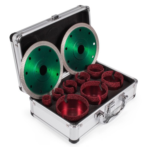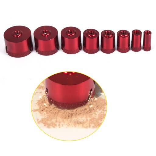 Ten zupełnie nowy profesjonalny zestaw wierteł diamentowych o średnicach 20/25/32/35/40/50/60/68mm (0.79/1/1.25/1.4/1.6/2/2, 4/2.7 cala) i gwint M14 , oferuje szybkie, proste i czyste cięcie. Do opuszczenia miejsca pracy nie jest potrzebna woda.