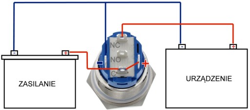Podłączone "NO" i "C": obwód jest zawsze otwarty, chyba że naciśniesz przycisk.