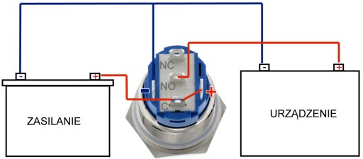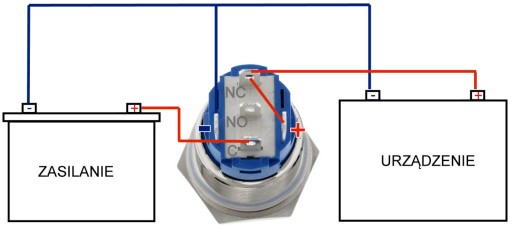 Podłączone "NO" i "C": obwód jest zawsze otwarty, chyba że naciśniesz przycisk.