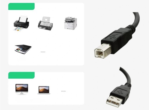 Kabel służy do podłączania urządzeń z portem USB Typu B, takich jak drukarka czy skaner, do portu USB komputera.