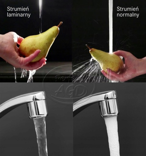 Konstrukcja aeratora zapewnia zwarty i krystaliczny strumień wody, który skutecznie eliminuje rozbryzg.