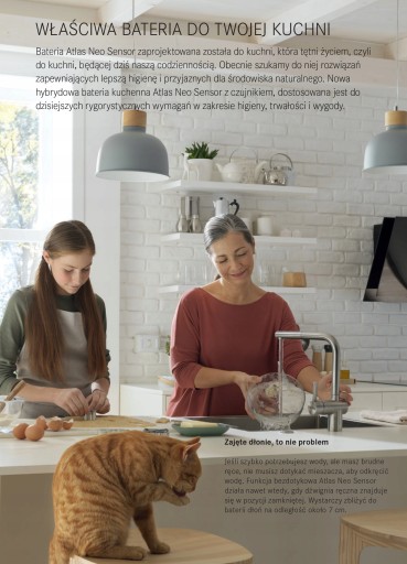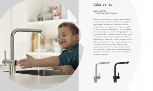 Odkręcanie wody odbywa się poprzez wykonanie ruchu dłonią w odległości około 7 cm od czujnika,bez dotykania dźwigni mieszacza i baterii. Dzięki temu pozostaje ona zawsze czysta. Odkręcona woda wyłączy się automatyczie po 30 sekundach.