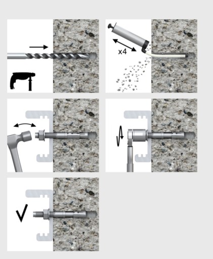 - Nadaje się do zredukowanego kotwienia w celu uniknięcia kontaktu ze zbrojeniem