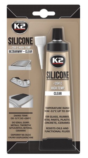 Przezroczysty silikon najwyższej jakości przeznaczony do zastosowania w motoryzacji, przemyśle i domu. Nadaje się do uszczelniania przestrzeni wokół szyb, szyberdachów, ram drzwi, powierzchni metalowych i z tworzyw sztucznych, tkanin, betonu, połączeń elektrycznych, elementów silnika, podzespołów napędowych, chłodnic, pomp, przewodów itp. Odporny na oleje, smary, płyny eksploatacyjne, wodę, mróz, wibracje oraz promienie UV. Zakres temperatur od -51ºC do 204°C. Czas pracy 10 min. Pełne utwardzenie następuje po 12-24 godzinach.