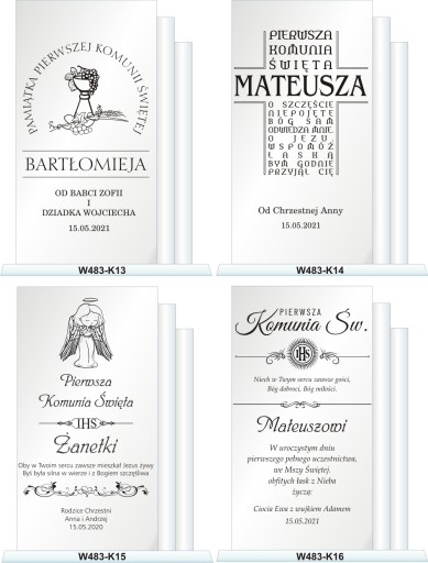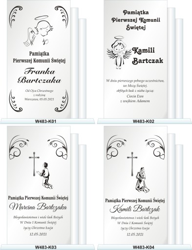 Na statuetce grawerujemy laserem rysunek z dedykacją z okazji Pierwszej Komunii.