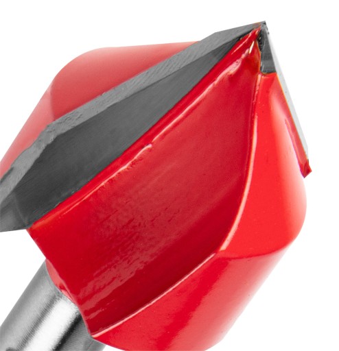 Frez do rowków typu V, HM, 25.4 x 25.4 mm, trzpień 8 mm GRAPHITE (nr ref. 56H210) przeznaczony do precyzyjnej obróbki m.in. drewna, PCV, płyt wiórowych przy pomocy frezarek górnowrzecionowych. Głowica wyposażona została w płytki skrawające wykonane z węglika spiekanego.