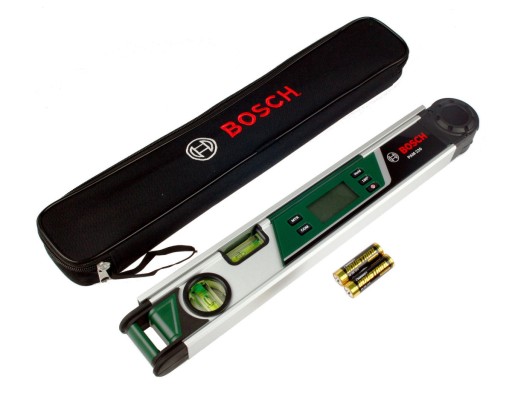 Cyfrowy kątomierz firmy BOSCH model PAM 220 bardzo precyzyjnie oblicza kąty, jest szybszy, dokładniejszy i przede wszystkim bardziej ekonomiczny od innych metod pomiarowych. Jest wyjątkowo prosty w obsłudze i nie tylko mierzy kąty z dokładnością +/- 0,2°, ale także precyzyjnie przenosi je na inne elementy. Dzięki kątomierzowi PAM 220 wykluczone jest ryzyko popełnienia błędu na skutek uciążliwego posługiwania się szablonami oraz korygowanie błędów budowlanych powstałych na skutek złego obliczenia kątów. Wystarczy włączyć kątomierz, odczytać wynik pomiaru, przenieść go na element i gotowe. Duży wskaźnik cyfrowy na przedniej ściance urządzenia pozwala na odczytanie wyniku pomiaru w każdych warunkach. Dzięki swojej solidnej konstrukcji kątomierz BOSCH PAM 220 może być stosowany w ciężkich warunkach budowach. Nowością są wbudowane funkcje matematyczne ułatwiające współpracę z piłami ukosowymi (ukośnicami), dzięki którym kątomierz bardzo szybko przelicza i wyświetla na wyświetlaczu jaki kąt uciosu należy ustawić na ukośnicy aby uzyskać zadany kąt. Funkcja ta pozwala na automatyczne obliczanie prostych kątów oraz podwójnych kątów uciosu i kątów nachylenia na ukośnicy.