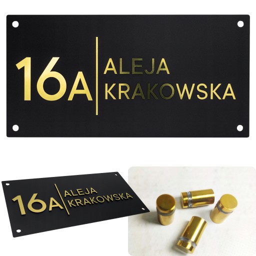 ✅Nasza tabliczka adresowa 19x38 cm to doskonałe połączenie nowoczesnego stylu i wyjątkowej trwałości. Wykonana z czarnej, matowej plexi oraz laminatu złotego szczotkowanego, jest odporna na warunki atmosferyczne, dzięki czemu zachowa swój wygląd przez wiele lat. Cztery dystanse montażowe pozwalają na łatwe i stabilne zamocowanie tabliczki, a wycinanie laserowe gwarantuje gładkie, estetyczne krawędzie. Idealny wybór dla osób ceniących funkcjonalność i styl.