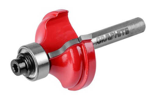 Frez kształtowy z łożyskiem, zaokrąglający, HM, 32 x 12.9 mm, trzpień 6 mm GRAPHITE (nr ref. 56H227) przeznaczony do precyzyjnej obróbki m.in. drewna, PCV, płyt wiórowych przy pomocy frezarek górnowrzecionowych. Głowica wyposażona została w płytki skrawające wykonane z węglika spiekanego. Frez wyposażony został w łożysko, które ułatwia prowadzenie frezarki.