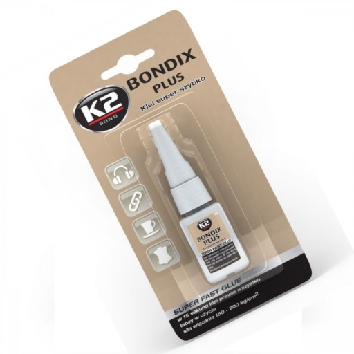 BONDIX PLUS jest jednoskładnikowym klejem działającym błyskawicznie, który łączy prawie wszystkie gładkie powierzchnie, ściśle do siebie pasujące. Nie wymaga żadnego mieszania ani podgrzewania. BONDIX PLUS nie zawiera żadnego rozpuszczalnika, ma niską toksyczność, umiarkowany zapach i jest niepalny.