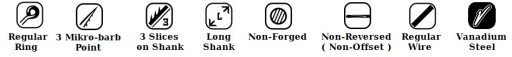 3 zadziory na trzonku utrzymają wszelkie przynęty i zabezpieczą je przed zsuwaniem się z trzonka haka.