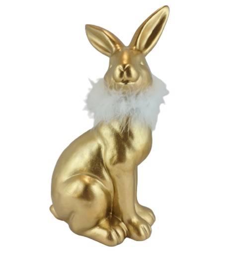ПАСХАЛЬНЫЙ ЗАЯЦ КРОЛИК, КЕРАМИКА, СИДЯЩИЙ, ЗОЛОТО
