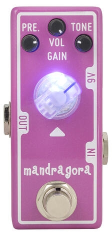 Tone City Mandragora to efekt zapewniający brzmienie od low-gain do medium-gain overdrive, zainspirowany bardzo popularnym 4-gałkowym butikowym overdrive z USA, nazwanym na cześć miasta w stanie Michigan. Efekt działa równie dobrze przed czystym jak i już przesterowanym wzmacniaczem i oferuje dwie indywidualne regulacje barwy, co pozwala jeszcze lepiej kształtować końcowe brzmienie. Regulacja Pre łączy w sobie regulację wzmocnienia i barwy, dodając do sygnału słodkiego harmonicznego bogactwa, natomiast regulacja Tone obejmuje szerszy zakres częstotliwości w celu zmiany ogólnego brzmienia kostki.