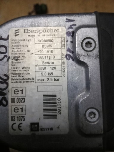 ОТОПЛЕНИЕ B5WS OPEL INSIGNIA 201918 9272718