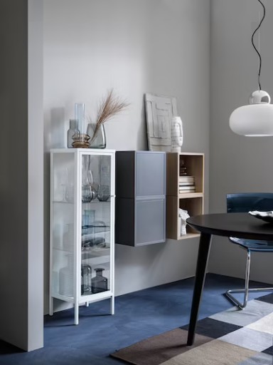 Połącz z resztą artykułów z serii do przechowywania BAGGEBO i stwórz dopasowane i kompletne rozwiązanie z regałami, ukrytymi schowkami, ławą TV i szafkami ekspozycyjnymi.