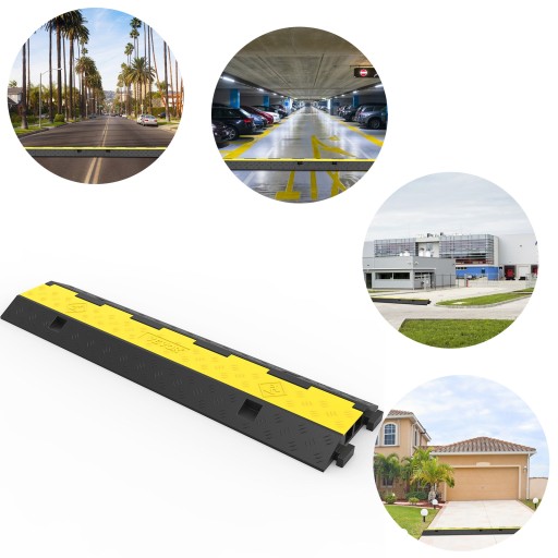 Ta rampa kablowa została zaprojektowana w celu kontrolowania prędkości ruchu i zapewnienia wystarczającej ilości miejsca na kable drogowe bez powodowania uszkodzeń samochodów lub dróg. Przyjmuje wysokiej jakości gumową strukturę, pokrowiec z PVC do długotrwałej pracy, nośność 11 000 funtów i jest bezpieczny podczas użytkowania w nocy.