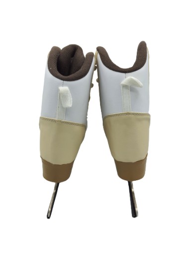Łyżwy figurowe kolor biały, odcienie beżu i brązu.