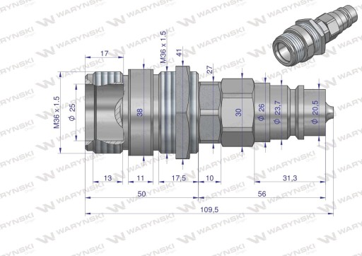 SZYBKOZŁĄCZE HYDRAULICZNE Redukcja ze starego typu na nowy gniazdo/wtyczka EURO skręcane Waryński