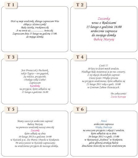 - Tekst na okładkę np. Zaproszenie na urodziny: