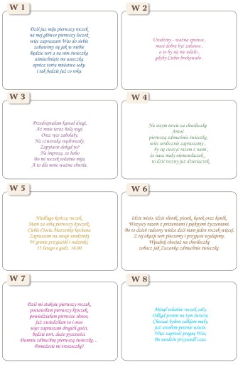- Wierszyk do środka /te podane na przykładach są tylko przykładowe, mogą przysłać Państwo dowolny tekst/