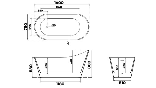 BRAIDER MEMORIA АКРИЛОВАЯ ОТДЕЛЬНОСТОЯЩАЯ ВАННА 160x75