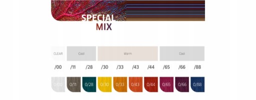 Odcienie Special Mix Kolestonu Perfect są czystymi odcieniami. Im jaśniejszy odcień bazowy, tym mniejsza ilość odcienia Special Mix jest potrzebna. Wyjątek: poziomy.