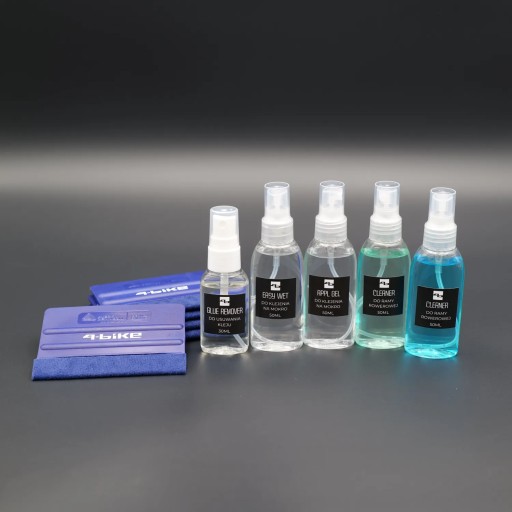 Płyn do usuwania kleju pozwala na szybkie i dokładne pozbycie się kleju, który często pozostaje po odklejeniu starych naklejek. Pozostały klej mocno utrudnia poprawną aplikację folii, a więc trzeba się go pozbyć.