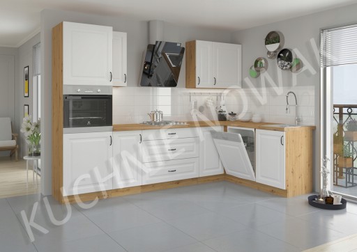 - - kolor frontów szafek dolnych: biały mat (MDF, PCV),
