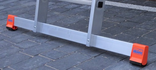 W wyposażeniu drabiny znajduje się szeroki stabilizator o długości 1,12m. Zapewnia nie tylko bezpieczeństwo ale i komfort przy korzystaniu z drabiny. Dodatkowo, stopki są ogumowane i nie rysują nawierzchni, dzięki czemu można z niej korzystać nawet na drewnianych panelach.