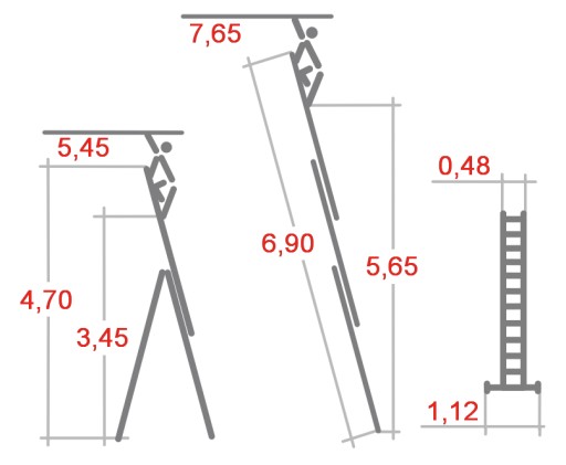 - drabina 2-elementowa wolnostojąca oraz przystawna (pozycja Ʌ oraz \)