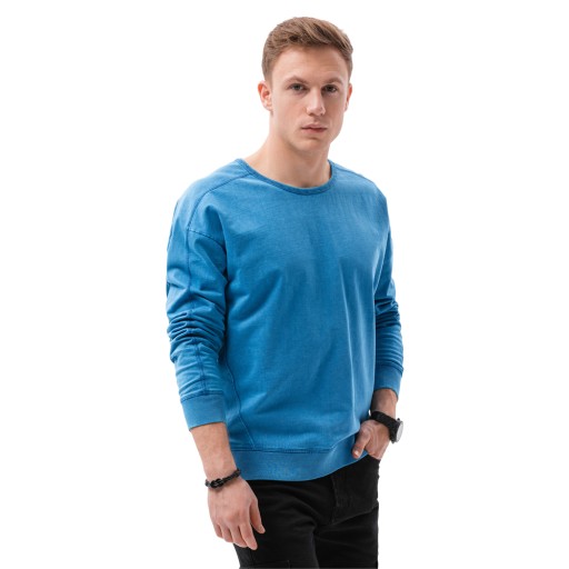 Luźna bluza męska o regularnym kroju. Wykorzystano materiał z efektem sprania. Ściągacze na rękawach oraz dole bluzy to funkcjonalne i wygodne wykończenie. Bawełniana bluza to komfort w codziennym użytkowaniu. Świetnie sprawdzi się w połączeniu z joggerami lub klasycznymi jeansami.