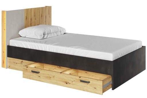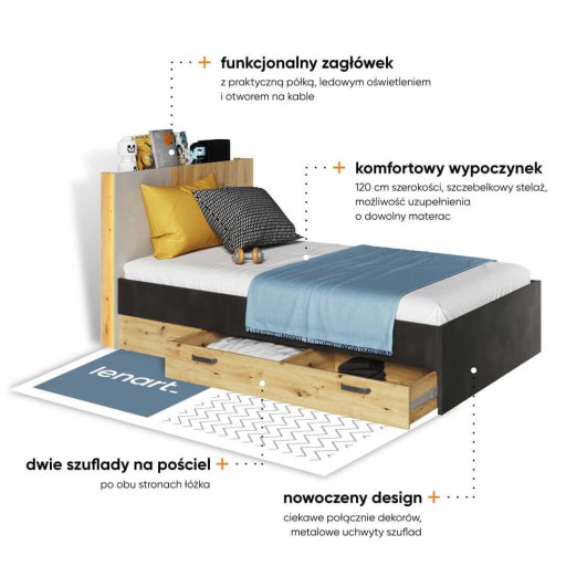 Łóżko z dwiema szufladami na pościel, półką w zagłówku i oświetleniem ledowym (bez materaca)