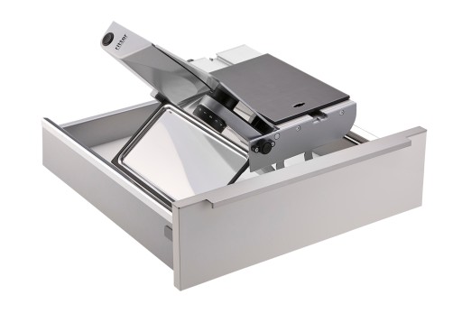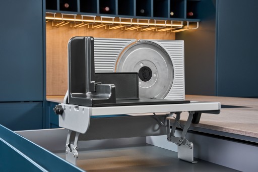 Krajalnice do żywności wbudowane w szuflady kuchenne zajmują mało miejsca, a jednocześnie są zawsze pod ręką. Wbudowane rozwiązanie pozwala również zaoszczędzić miejsce na blacie.