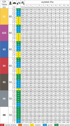 W doborze odpowiedniej końcówki pomoże Państwu tabela wydatku rozpylaczy umieszczona niżej.