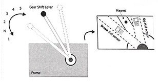 Magnes dołączony w paczce przyklejamy na dźwignię zmiany biegów w położeniu biegu neutralnego, naklejamy 2 czujniki, tak aby mogły wyłapać magnes.