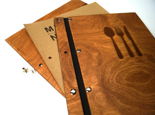 Idealnie nadają się do wielokartowych Menu restauracyjnych- wystarczy bok kart przedziurkować dziurkaczem i zamocować śrubami pod listewką i gotowe!