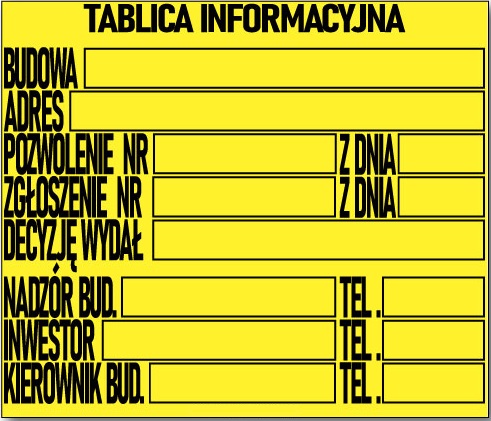 ✔️ Tablica INFORMACYJNA BUDOWLANA mała wykonana z PCV metodą sitodruku o wymiarach 70 x 60 cm ✔️