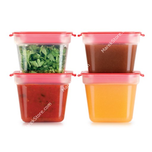 Pojemniki są idealne do przechowywania przecierów pomidorowych, sosów do makaronu, świeżych ziół, musów owocowych, bulionów mięsnych i warzywnych, sosów demi-glace itp. Posiadają specjalnie ukształtowane dno ułatwiające wyjmowanie zamrożonego pokarmu.