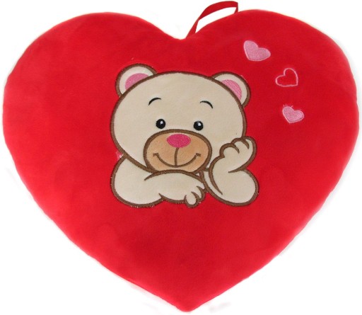 Świetna poduszka w kształcie serca z haftowanym misiem i serduszkami.