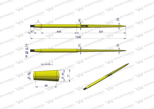 Прямая стойка для тяжелых погрузчиков L-1200 мм TUR WARYŃSKI