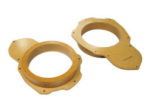 Impregnowane i dwukrotnie lakierowane dystanse głośnikowe wykonane z MDF, przeznaczone do stabilnego montażu głośników w fabrycznych miejscach montażowych samochodu. Jakość i dokładność wykonania zapewnia technologia CNC. Dystanse firmy Powe po frezowaniu są dodatkowo szlifowane, a następnie nanoszone są 3 warstwy zabezpieczające przed wilgocią (jedna warstwa impregnacji i dwie warstwy bezbarwnego lakieru). Szlifowanie powierzchni dystansu po frezowaniu oraz po lakierowaniu pozwala uzyskać szczelną, gładką powłokę ochronną na całej powierzchni, w tym również na linii cięcia, co skutecznie zapobiega wnikaniu wilgoci do wnętrza MDF-u.