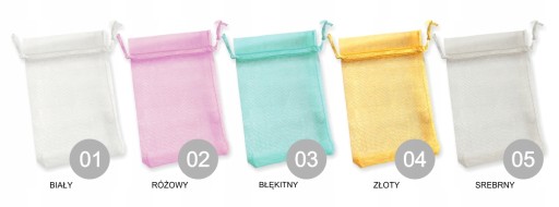 Woreczki z organzy to świetny sposób na zapakowanie podziękowań dla gości. Mogą także służyć, jako dodatkowa dekoracja stołu. Nie wymagają wiązania, ponieważ posiadają gotowy sznureczek, który po pociągnięciu składa woreczek, nadając mu ładny kształt. Podziękowania nie są pakowane w woreczki, są wysyłane do samodzielnego pakowania.