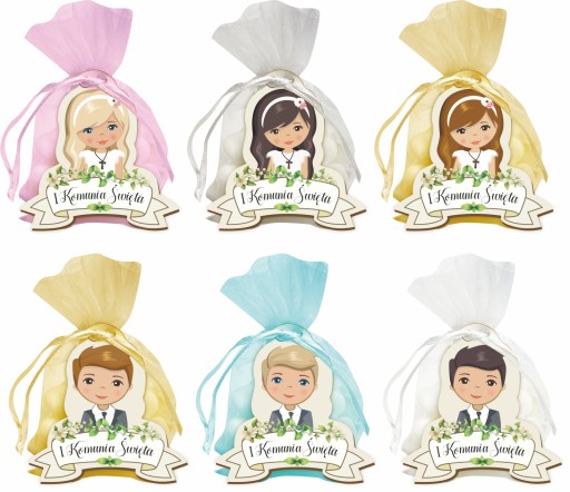 Zawieszkę można dołączyć do woreczka z organzy wypełnionego cukierkami lub innego małego prezentu. Wygląda to bardzo efektownie.